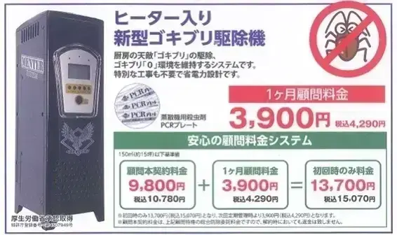 【3】月毎の定期管理日には、ゴキブリの状態により無料でソフト(簡易薬剤施工)の着手を致します。